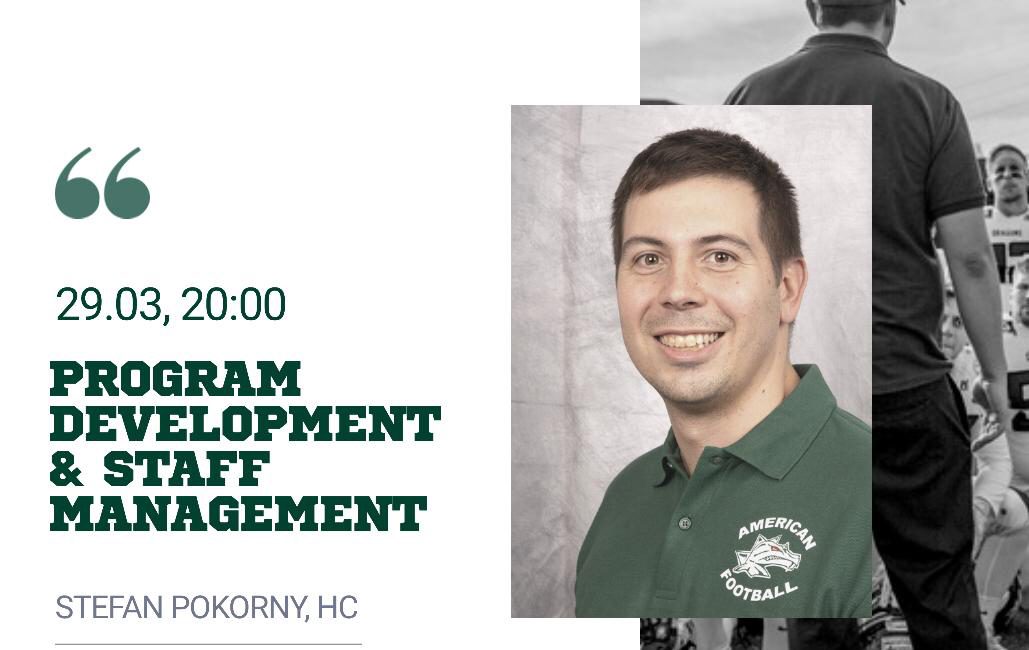 Der erste Vortrag findet ab Sonntag, 29. März 2020, um 20:00 Uhr mit Coach Pokorny statt. Unser Head Head Coach wird hier über die Entwicklung eines Football Programmes und das Management eines Coaching Staff sprechen.