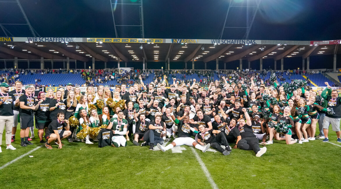 Die Anspannung war zu spüren. In der NV Arena stand gegen den Rekordmeister, die Vikings alles auf dem Spiel. Auf der Seite der Vikings wurden die beiden sehr starken Amerikanischen Spieler, Devontae Jordan und Tavarse Martin jr. sowohl in der Offense als auch in der Defense eingesetzt. Das fair geführte Spiel begann für den späteren Meister in der Offense nicht nach Wunsch. Man musste sich mit einem Fieldgoal zufrieden geben und ging mit 3 Punkten in Führung. Die Vikings gingen durch einen Touchdown von Tavarse Martin jr. in Führung (3:7). Im zweiten Viertel war es Silas Nacita der die nächsten Punkte für die Dragons erzielte und die Dragons mit 10:7 wieder in Front brachte. Das Special Team der Dragons nützte einen Fehler der Vikings aus und eroberte den Ball wieder für die Drachen. Silas Nacita bekam den Ball und es stand 17:7. Devontae Jordan, der allen Defenses in der Liga das Leben in der Saison schwer machte, konnte den Spielstand auf 17:14 verkürzen. Knapp eine Minute vor der Pause war es erneut Silas Nacita der die Endzone der Vikings erreichte. Der Dragons Defense gelang es den Angriff der Vikings vor der Pause im Sand verlaufen zu lassen und so ging es mit 24:14 in die Pause.