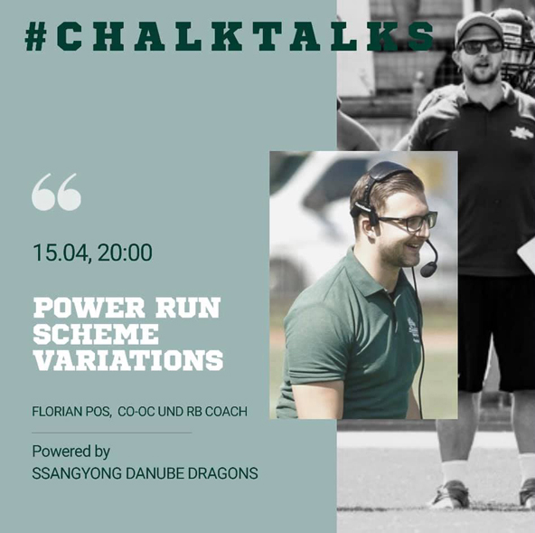 Kommenden Mittwoch, 15. April 2020, wird SsangYong Dragons OC Florian Pos zum Thema „Power Run Scheme Variations” vortragen.