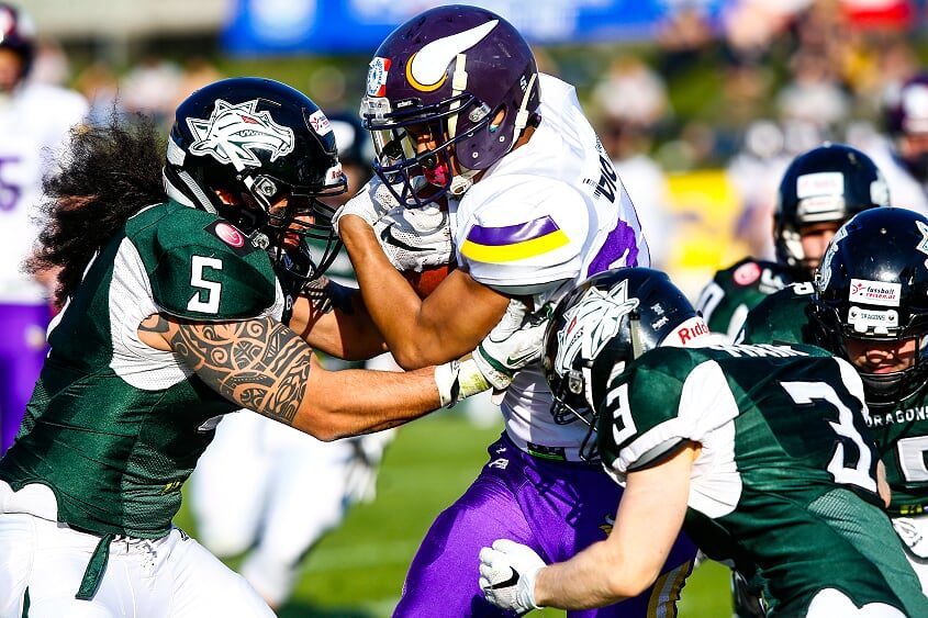 Im Gegensatz zu den Vikings, die am vergangenen Wochenende im Rahmen des internationalen ECTC-Wettbewerbs in Badalona, Spanien, antreten mussten, konnten die Dragons in ihrer Bye Week ihre Wunden lecken und sich bestmöglich erholen. Dennoch werden den Donaudrachen einige Leistungsträger verletzungsbedingt fehlen, welche es zu ersetzen gilt. Players to watch aufseiten der Dragons sind wie gewohnt QB Chad Jeffries mit seinem starken Receiving Corps. Auch spannend wird das Matchup der O-Line, rund um OT David Rauter und C Jonas Gasselich, mit der starken Vikings Defensive-Line. In der Verteidigung der Dragons zählen unter anderem CB Florian Albrecht und DL Bernhard Mosor zu den Playmakern.