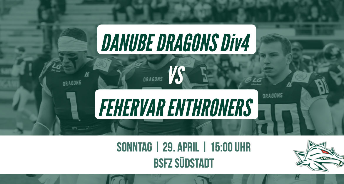 Kommenden Sonntag findet das erste Heimspiel der Division 4 Mannschaft der Danube Dragons statt. Wir treffen im BSFZ Südstadt um 15:00 Uhr auf die Fehervar Enthroners.